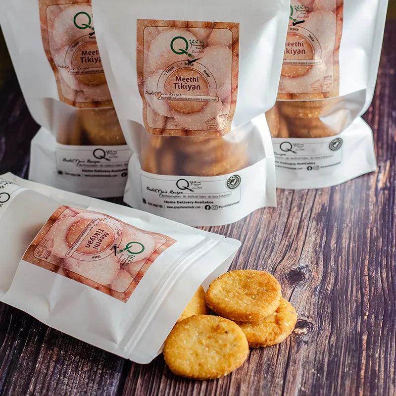 Who says cookies are a mere foreign product where the concept has originated from outside of Pakistan. The evergreen Homemade Meethi Tikiya is one of Qzeen’s high-demand products. Qzeen makes this product made with suji, garnished with coconut and sesame seeds.